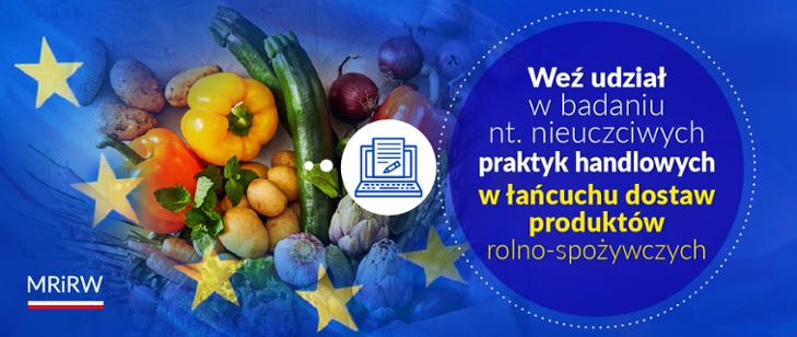 Zachęcamy wszystkich dostawców produktów rolnych i spożywczych do wzięcia udziału w badaniu prowadzonym przez Komisję Europejską na temat nieuczciwych praktyk handlowych w łańcuchu dostaw produktów rolno-spożywczych.