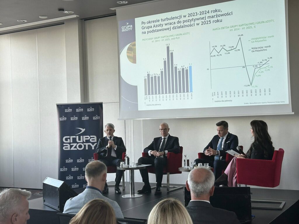 – Zgodnie z przyjętą strategią koncentrujemy swoją działalność na tym, na czym w Grupie Azoty znamy się najlepiej — produkcji i sprzedaży nawozów dla rolnictwa. To wokół nawozów budujemy stabilną organizację, zdolną skutecznie konkurować i odpowiadać za bezpieczeństwo żywnościowe Polski oraz całego regionu. Stale rozwijamy portfolio specjalistycznych produktów nawozowych i rozbudowujemy kanały sprzedaży, łącząc nowoczesne technologie z precyzyjnym odpowiadaniem na oczekiwania rynku – komentuje Andrzej Skolmowski, prezes zarządu Grupy Azoty. – Równolegle budujemy nowe źródła wartości i wzmacniamy odporność na zmiany w otoczeniu gospodarczym. Segment logistyki surowcowo-produktowej zyskuje strategiczne znaczenie, gwarantując bezpieczeństwo łańcucha dostaw, a nowotworzony segment chemii dla obronności odpowiada na rosnące zapotrzebowanie i zamiar osiągnięcia większej niezależności polskiego sektora obronnego –uzupełnia prezes Skolmowski.