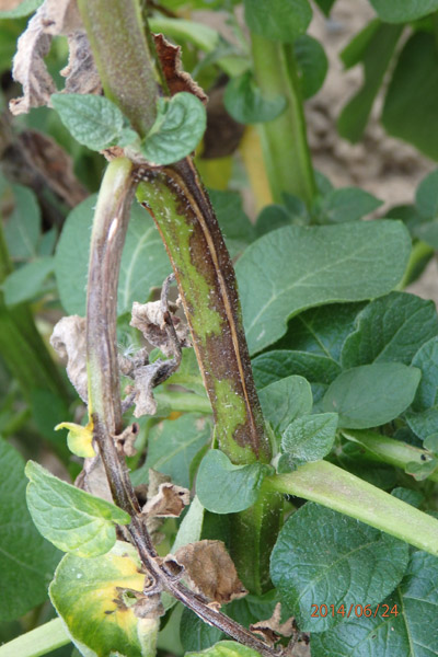 Sprawca choroby atakuje część nadziemną (liście i łodygi – fot. 1 i 2) oraz bulwy ziemniaka (fot. 3). Przy sprzyjających do swojego rozwoju warunkach (odpowiednie temperatury i wysoka wilgotność) choroba może dziennie zniszczyć 10% powierzchni asymilacyjnej rośliny, doprowadzając w ciągu kilku dni do zatrzymania jej możliwości gromadzenia plonu.