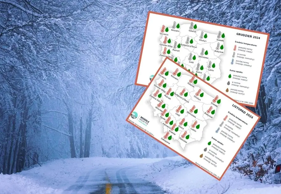 Norma średniej temperatury powietrza i sumy opadów atmosferycznych dla listopada z lat 1991-2020 dla wybranych miast w Polsce wraz z prognozą na listopad 2024 r.