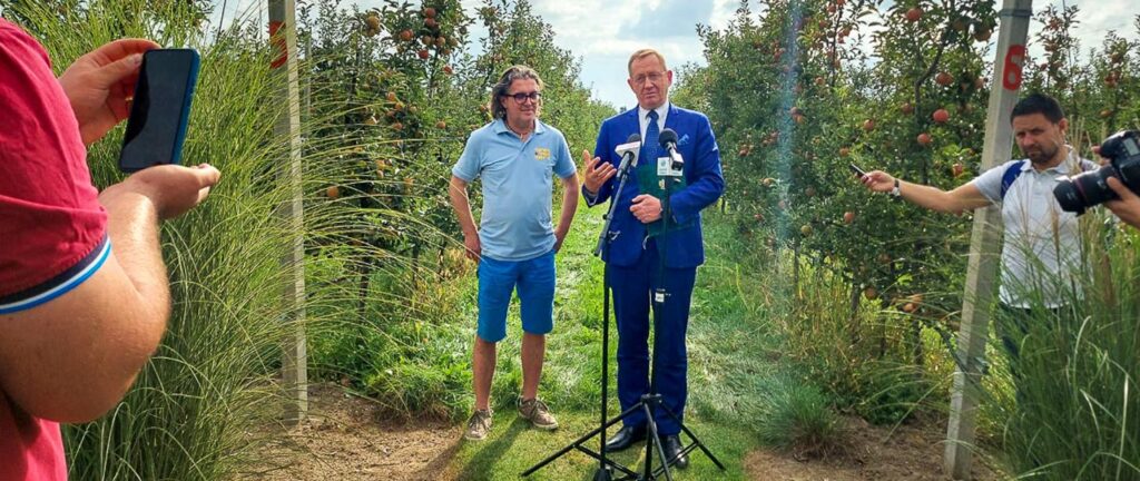 Po porannej prezentacji kampanii informacyjnej pn. Kupuj Świadomie PRODUKT EKOLOGICZNY odbyła się konferencja ministra rolnictwa i rozwoju wsi Roberta Telusa w sadzie ekologicznym. – Produkty ekologiczne to produkty najwyższej jakości, a zielony ekolistek daje gwarancję, że produkt jest certyfikowany od pola do stołu – podkreślił minister.