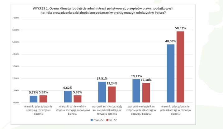 Na przełomie października i listopada bieżącego roku Polska Izba Gospodarcza Maszyn i Urządzeń Rolniczych przeprowadziła badanie dotyczące obecnej i przewidywanej koniunktury w branży. Jest to cykliczne badanie powtarzane co pół roku i przeprowadzane od czerwca 2014 roku. Jej efektem jest wartość liczbowa – indeks, który obrazuje nastroje panujące w branży.