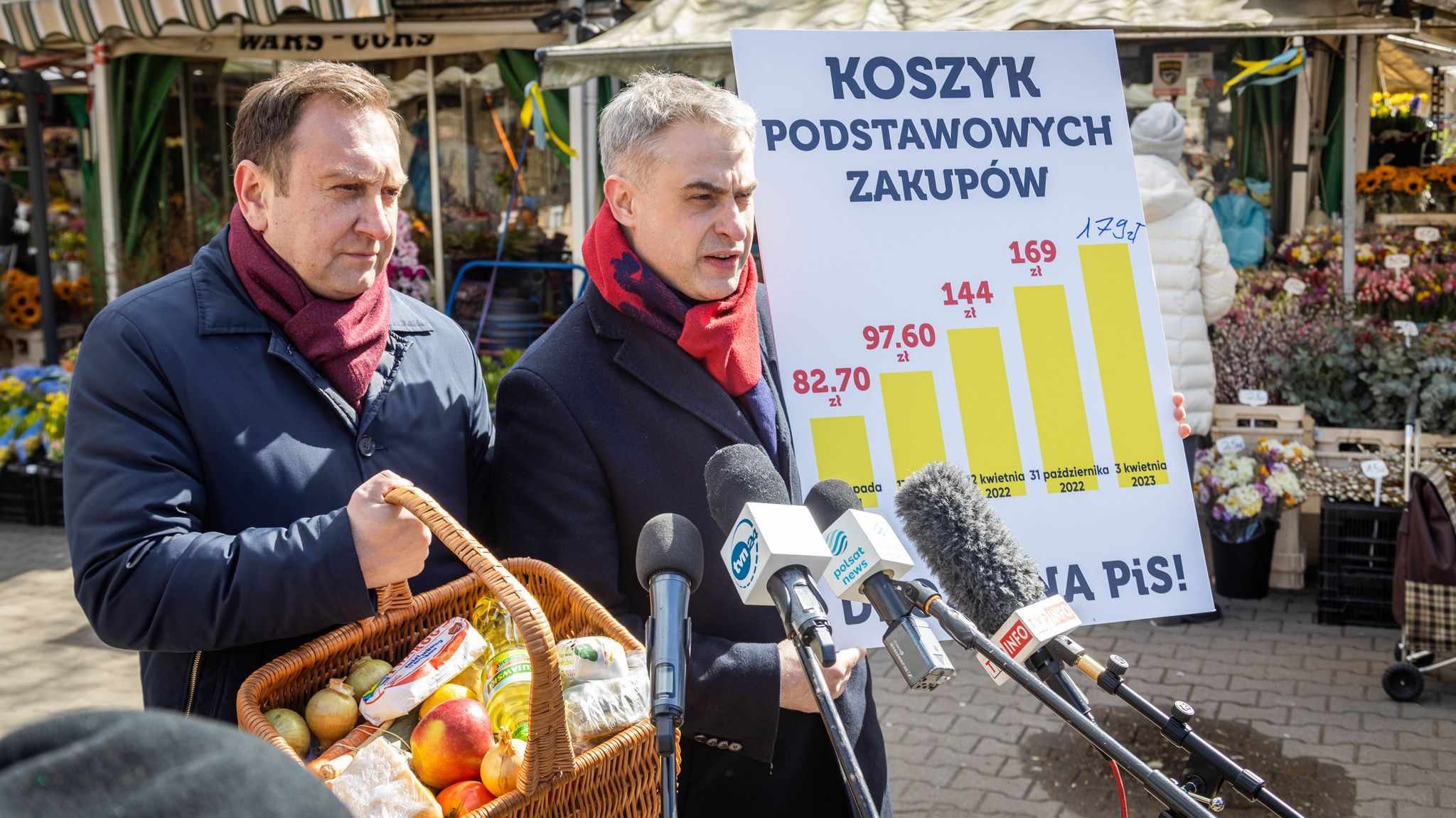 – Politycy twierdzą, że inflacji nie ma, że to nie jest aż tak wielki problem. Dlatego też zapraszamy posłów PiS: pójdźmy razem na takie zakupy! Nie wiemy, gdzie Adam Glapiński kupuje, ale i jego zapraszamy pod Halę Mirowską – oświadczyli posłowie Krzysztof Gawkowski i Tomasz Trela.