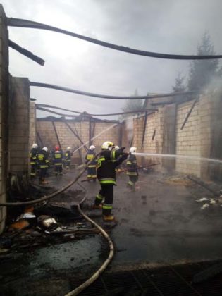 Po przybyciu na miejsce pożaru pierwszych zastępów straży pożarnych przystąpiono do działań gaśniczych w natarciu. Po dojeździe na miejsce zdarzenia dodatkowych zastępów podano kolejne prądy wody w obronie sąsiednich budynków. Spaleniu uległ budynek gospodarczy, murowany o drewnianej konstrukcji dachu, pokryty blachą, 2 ciągniki rolnicze, sprzęt warsztatowy, sprzęt rolniczy. Działania ratowniczo-gaśnicze trwały blisko 4,5 godziny, w których uczestniczyło 4 zastępy z JRG Tomaszów Lub. oraz 6 zastępów OSP.