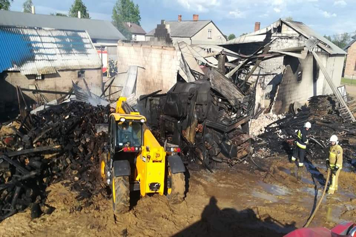 Prasa belująca, kombajn zbożowy, owijarka, opryskiwacz, siewnik zbożowy, wszelkiego typu elektronarzędzia, sprężarka i pasza dla zwierząt gospodarskich spłonęły w pożarze w miejscowości Modrzew gm. Zbuczyn.