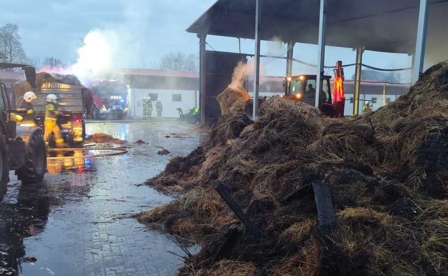 W płonącym obiekcie znajdowały się materiały paszowe dla około 100 koni oraz sprzęt rolniczy. Budynku nie udało się uratować — został doszczętnie zniszczony.
