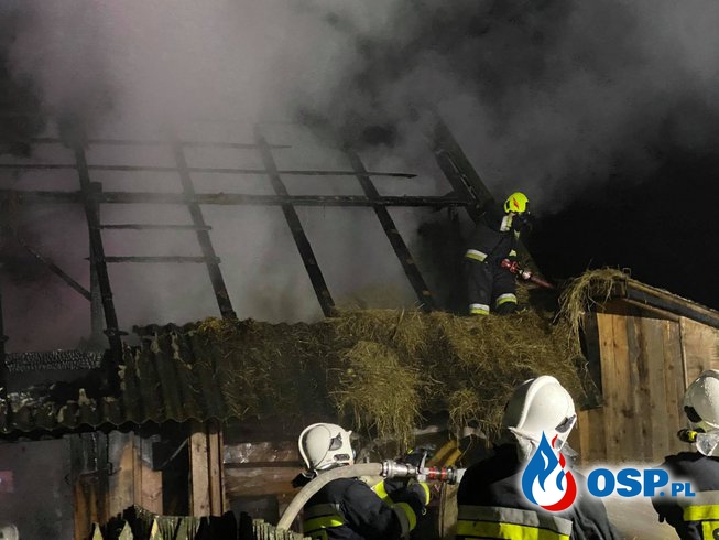 Strażacy gasili płonącą stodołę oraz bronili dom przed rozprzestrzenieniem się ognia. Stodoła doszczętnie spłonęła, ale budynek mieszkalny udało się uratować od ognia.