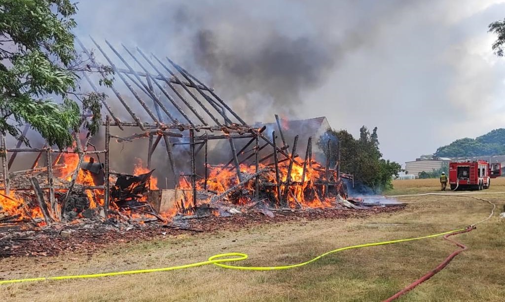 Prawdopodobnie uderzenie pioruna spowodowało pożar stodoły w Sroczewie w województwie wielkopolskim, która bardzo szybko została w całości objęta pożarem.