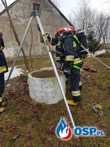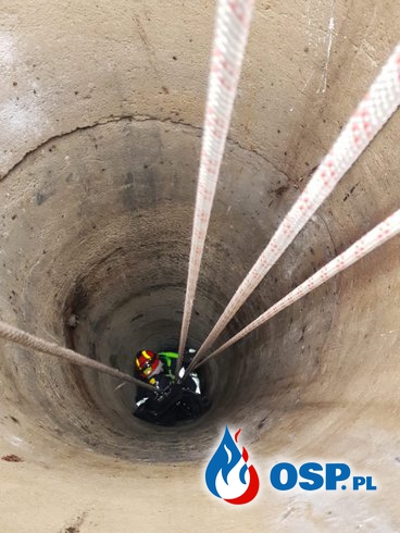 Po dojeździe zastępu PSP strażacy rozstawili trójnóg ratowniczy. Jeden z ratowników zabezpieczony w sprzęt ochrony dróg oddechowych, został opuszczony na dno studni.