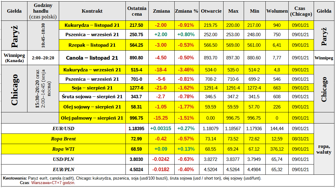 Zamknięcie środowej sesji na giełdowym rynku zbóż i oleistych – 01.09.2021:
