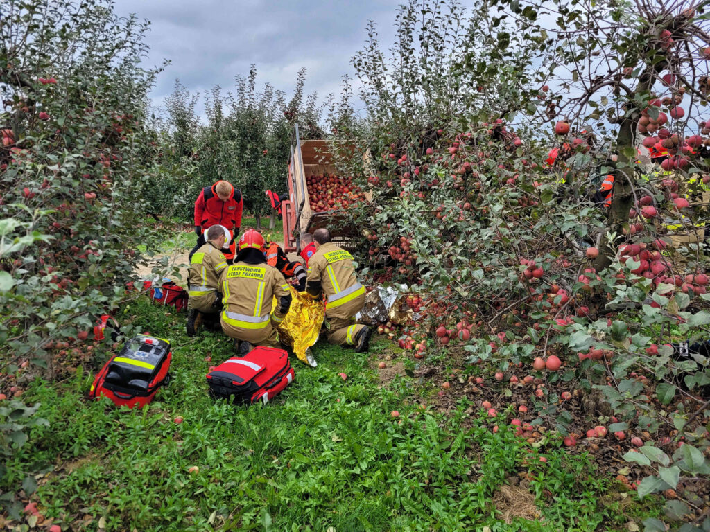 Wypadek w sadzie. Przewróciła się platforma do zrywu jabłek